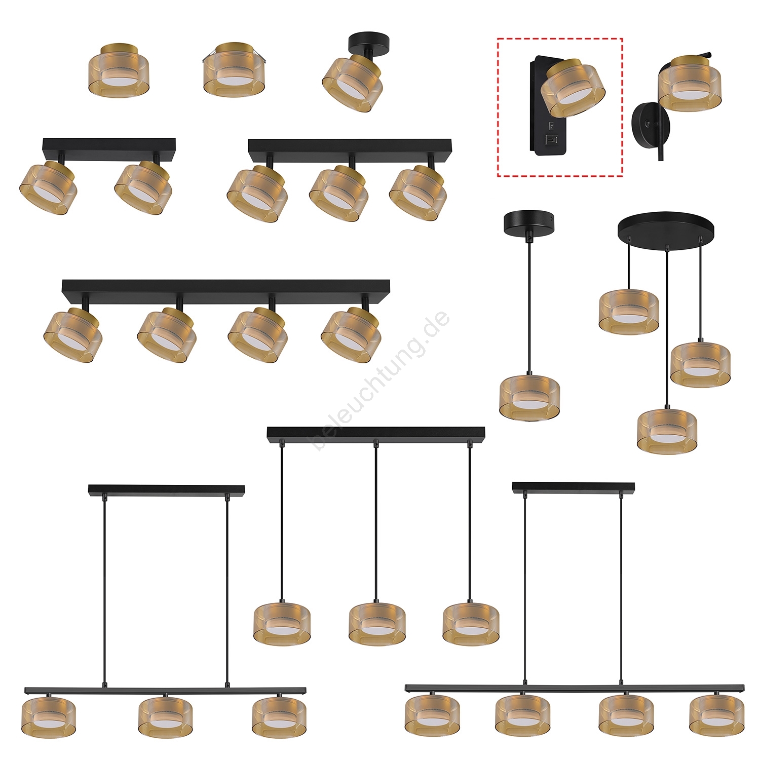 • Brilagi - LED AURA LUX Wandleuchte mit USB-Anschluss 1xGX53/30W/230V schwarz/gold