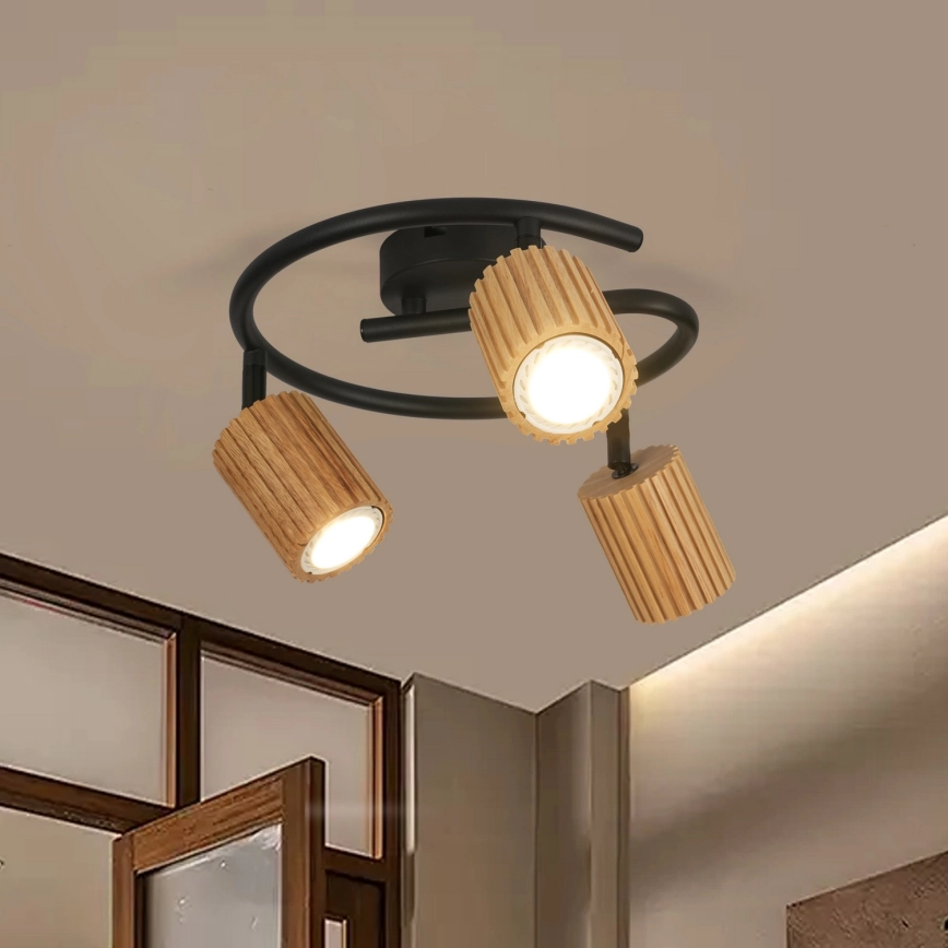 Brilagi - Spotleuchte MODERN WOOD 3xGU10/8W/230V Holz/Schwarz