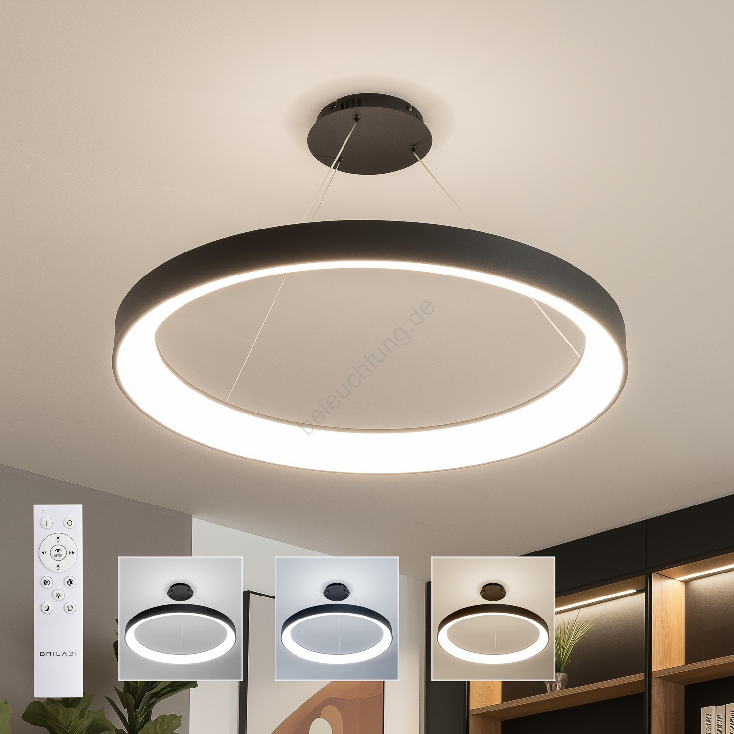 Brilagi - LED-dimmbare Hängeleuchte mit Seilabhängung FALCON II LED/108W/230V 3000-6500K Ø 80 cm schwarz + Fernbedienung