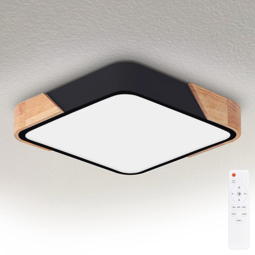 Brilagi - LED-dimmbare Deckenleuchte PILANA LED/48W/230V 3000-6500K Eiche/Schwarz 42x42 cm + Fernbedienung