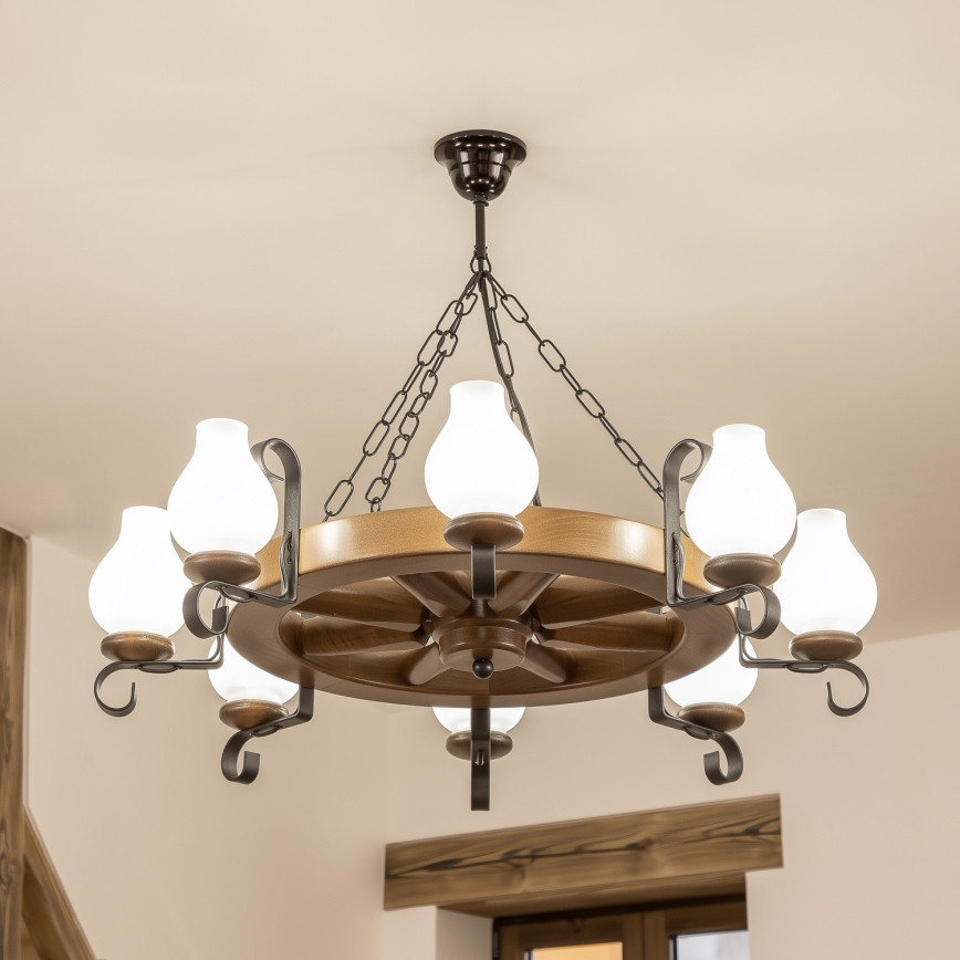 • Brilagi - Kronleuchter an Kette ROATA 8xE14/40W/230V Ø 70 cm Buche