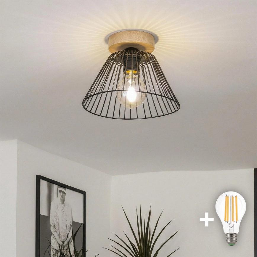 Brilagi - LED-Aufbau-Deckenleuchte CERIA WIRE 1x E27/40W/230V, Ø 21 cm, schwarz/Eiche