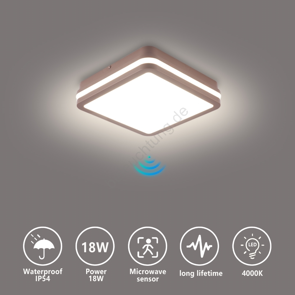 Brilagi - LED-Außen-Deckenleuchte mit Sensor BENE LED/18W/230V 21,5x21,5 cm braun IP54