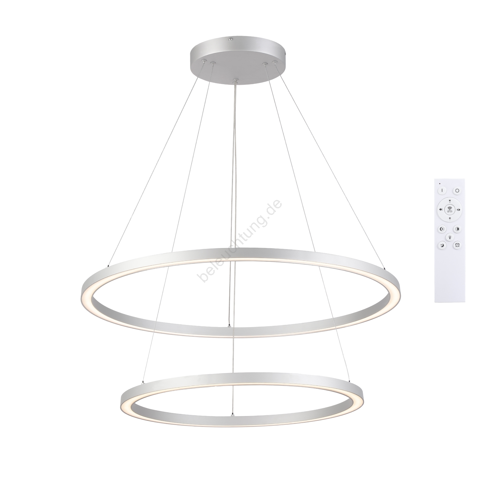 Brilagi - PORTOFINO LED dimmbare Pendelleuchte mit Seilaufhängung, LED 98W, 230V, 3000–6000K, Ø 80 cm, silber + Fernbedienung