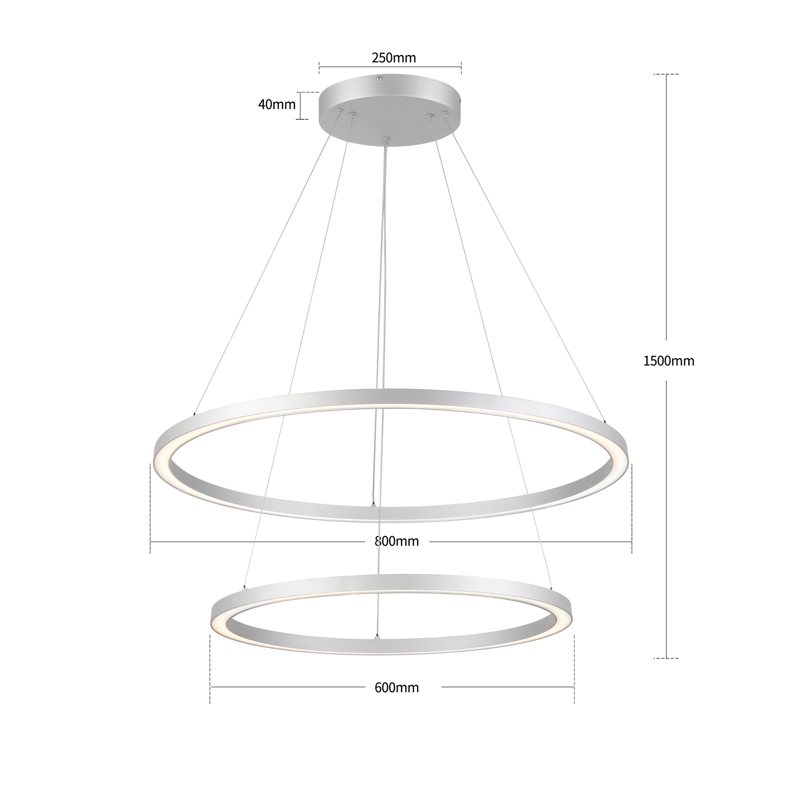 • Brilagi - PORTOFINO LED dimmbare Pendelleuchte mit Seilaufhängung, LED 98W, 230V, 3000–6000K, Ø 80 cm, silber + Fernbedienung