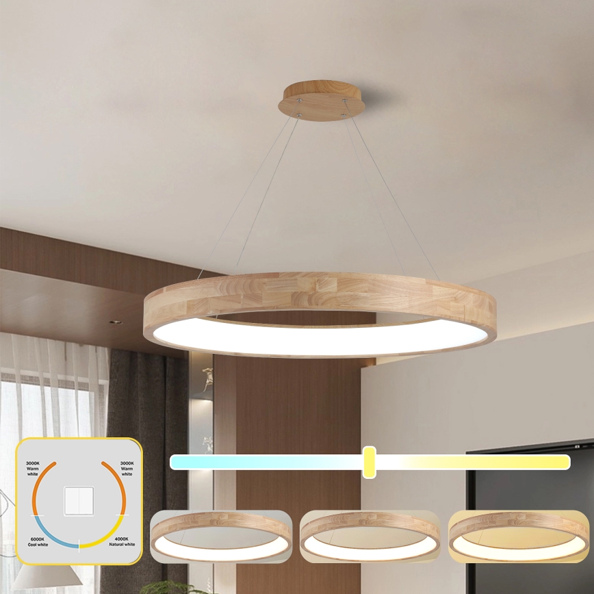 Brilagi - LED-Pendelleuchte an Kabel FALCON WOOD LED/60W/230V 3000/4000/6000K Ø 80 cm Holz