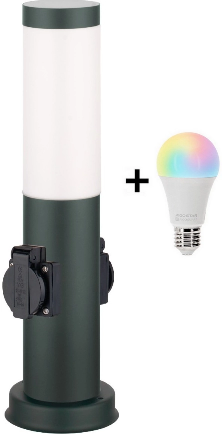 • Brilagi - LED RGBW dimmbare Außenleuchte mit 2 Steckdosen 1xE27/15W/230V 2700-6500K IP44 40 cm Anthrazit