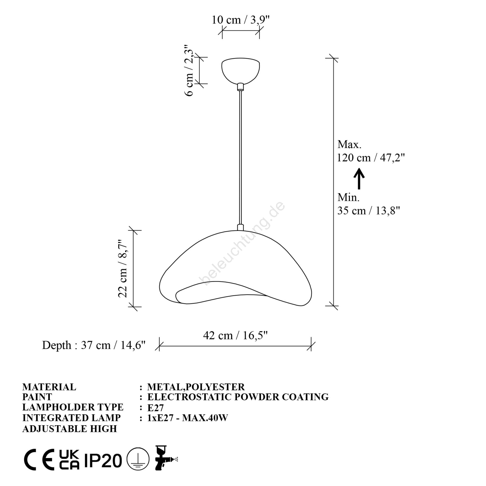 Brilagi - Pendelleuchte an Kabel WABI SABI 1xE27/40W/230V Ø 42 cm weiß