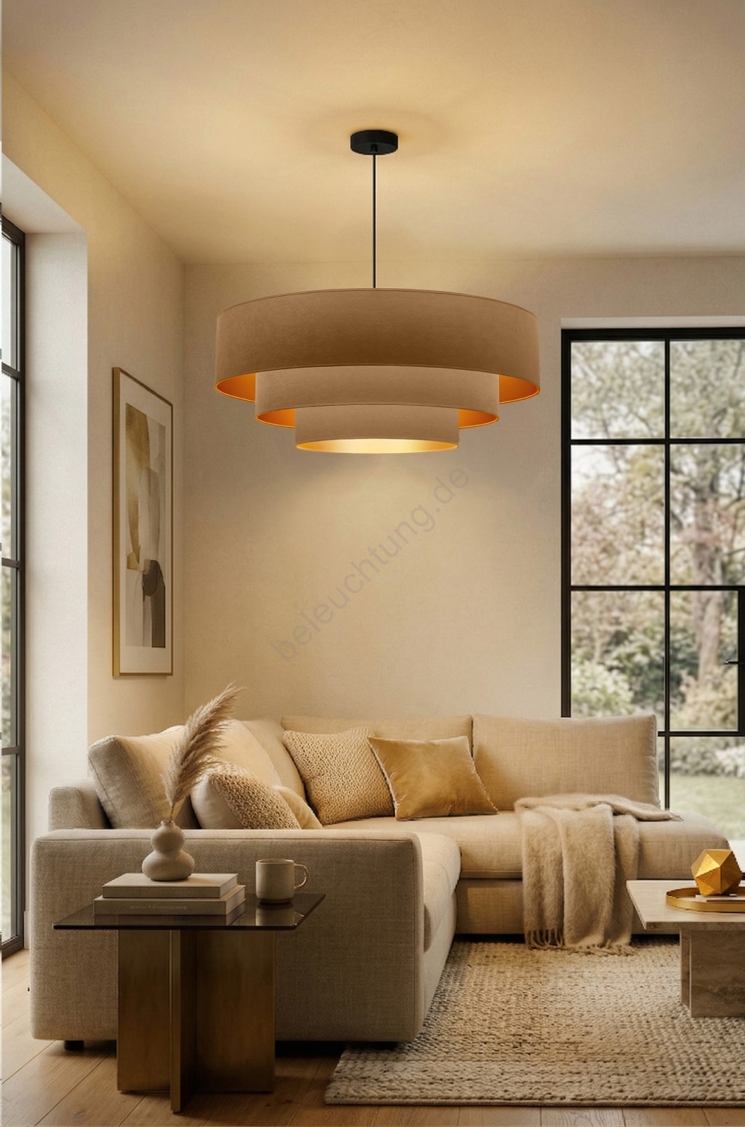 Brilagi - Pendelleuchte an Kabel LUNETA 3xE27/60W/230V Ø 80 cm beige/gold zeichnet sich durch schönes und funktionales Design aus. Eine Glühbirne mit E27 Sockel ist für die Leuchte geeignet. Hier, können Sie andere Glühlampen zu vorteilhaften Preisen kaufen. Sie erhalten eine attraktive Ergänzung für Ihr Zuhause.