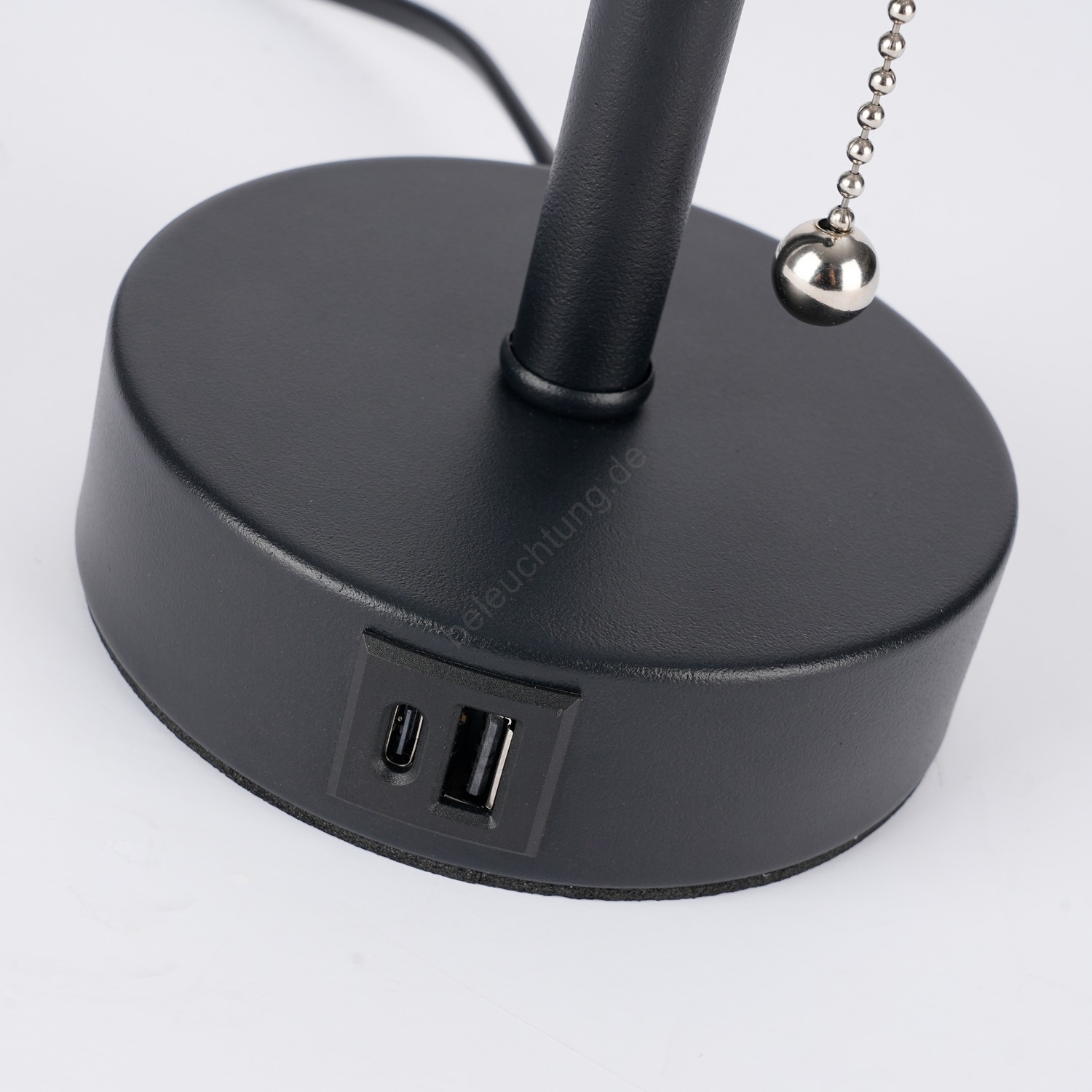 Brilagi - Tischlampe TABLON mit USB-Anschluss 1xE27/25W/230V schwarz/creme