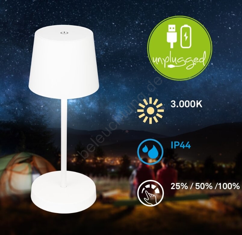 • Briloner 7423016 - LED dimmbare wiederaufladbare Außen-Tischlampe LED/2,6W/5V 2000mAh IP44 weiß
