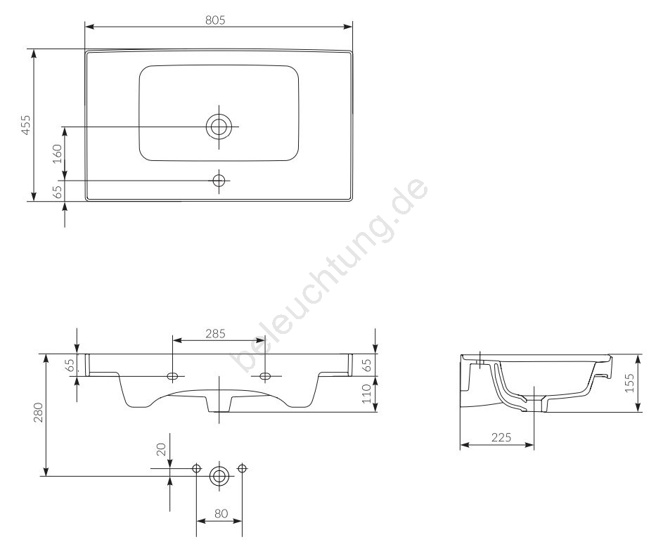 • Waschbeckenarmatur und Ablaufgarnitur sind nicht im Lieferumfang enthalten.
