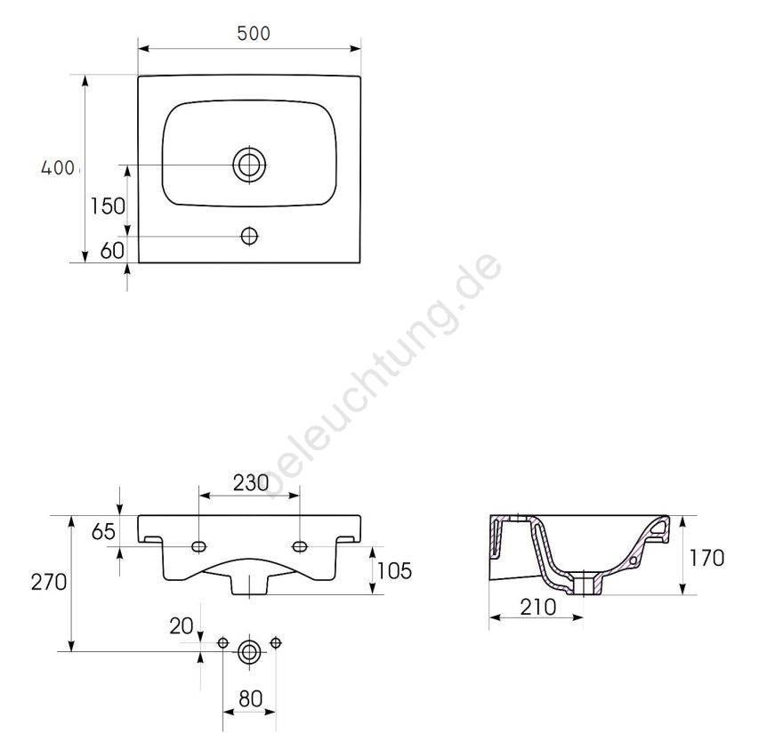 • Waschbeckenarmatur und Ablaufgarnitur sind nicht im Lieferumfang enthalten.