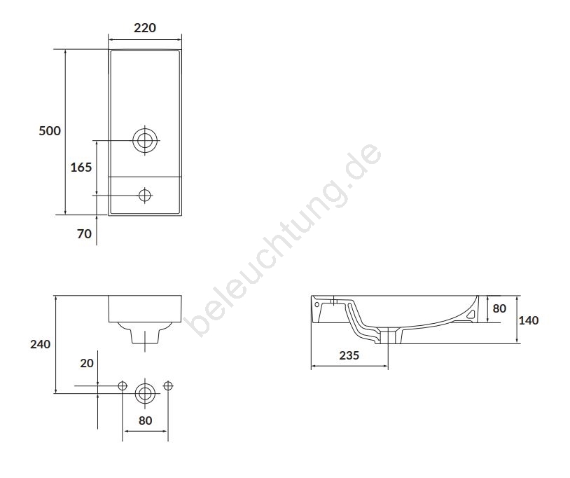 • Waschbeckenarmatur und Ablauf sind nicht im Lieferumfang enthalten.