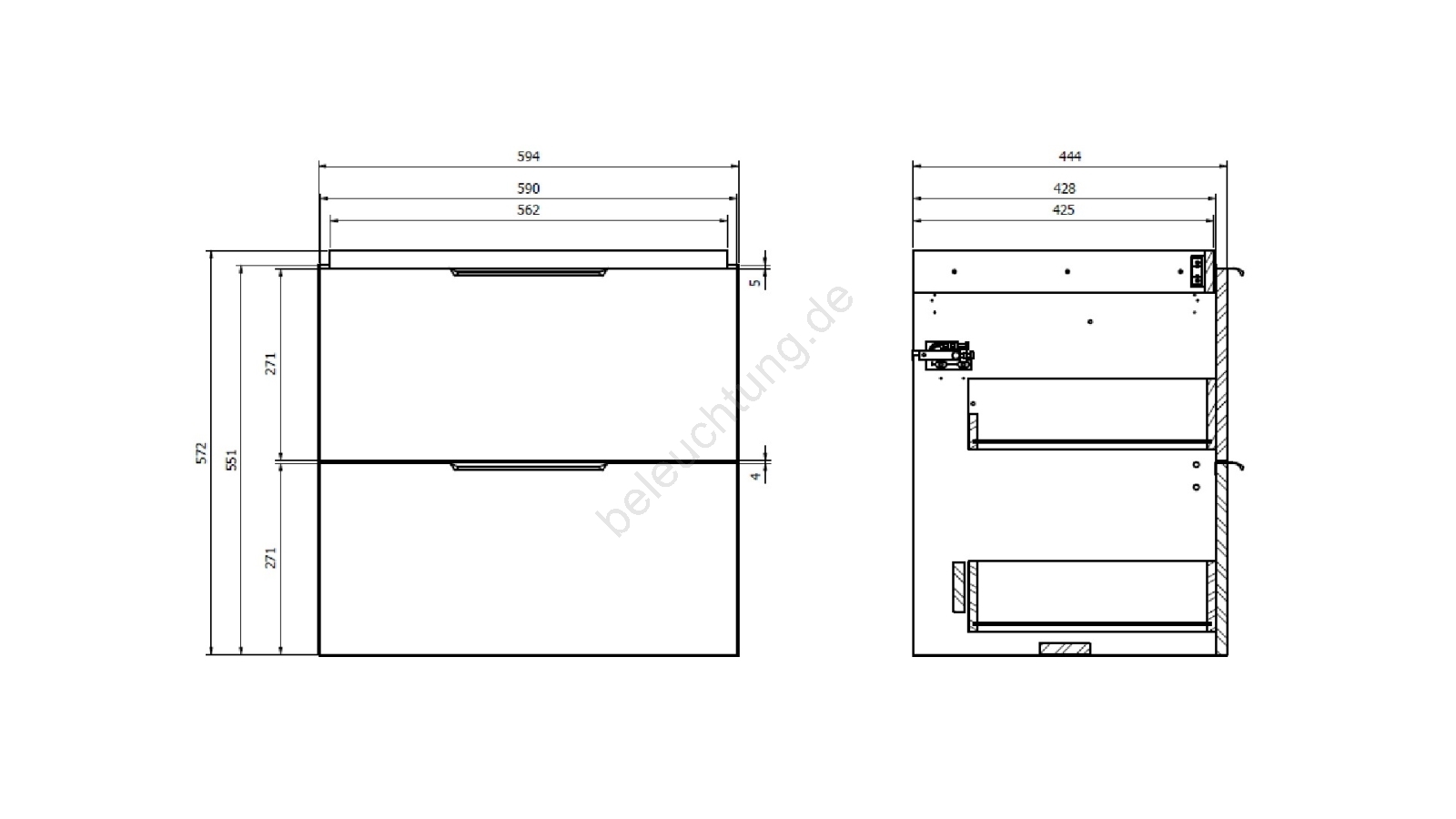 • Der Schrank verfügt über zwei geräumige Schubladen mit Soft-Close-Dämpfung.