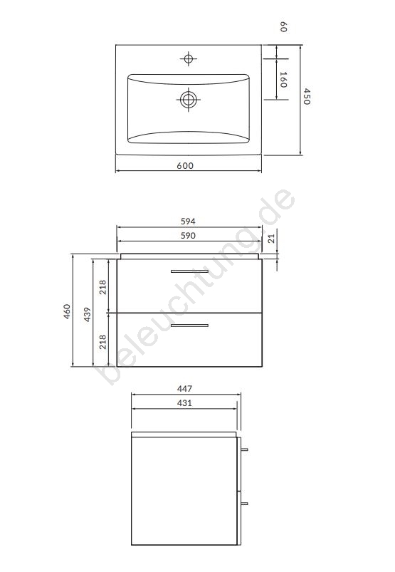 • Das Keramikwaschbecken hat eine klassische rechteckige Form mit Hahnloch und Überlauf.