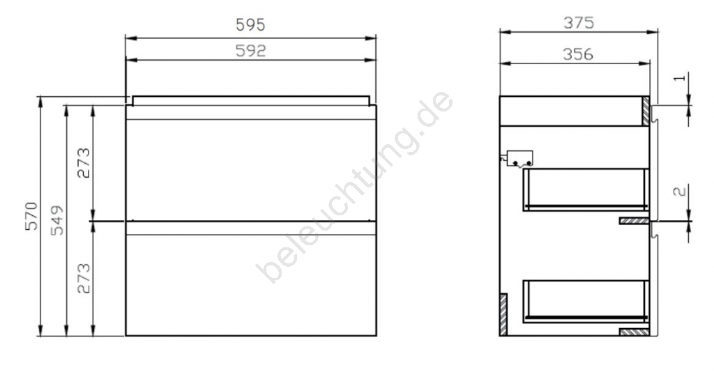 • Der Schrank verfügt über zwei geräumige Schubladen mit Soft-Close-Funktion und verdeckten Griffen.