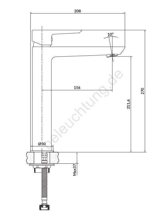 • Ein metallischer Klick-Ablauf mit Anschluss-Schläuchen ist im Lieferumfang enthalten.
