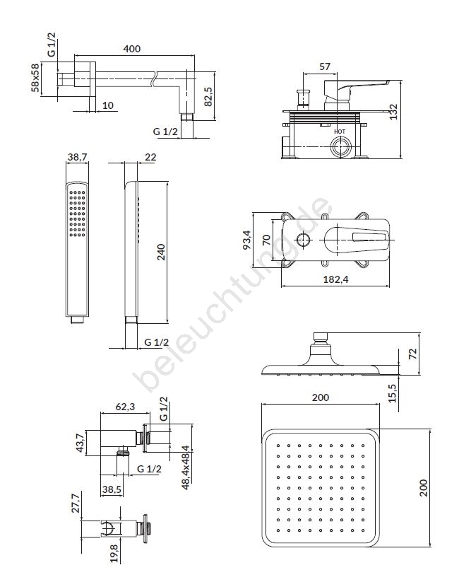 • Wasserdurchfluss der Kopfbrause: 19 l/min.