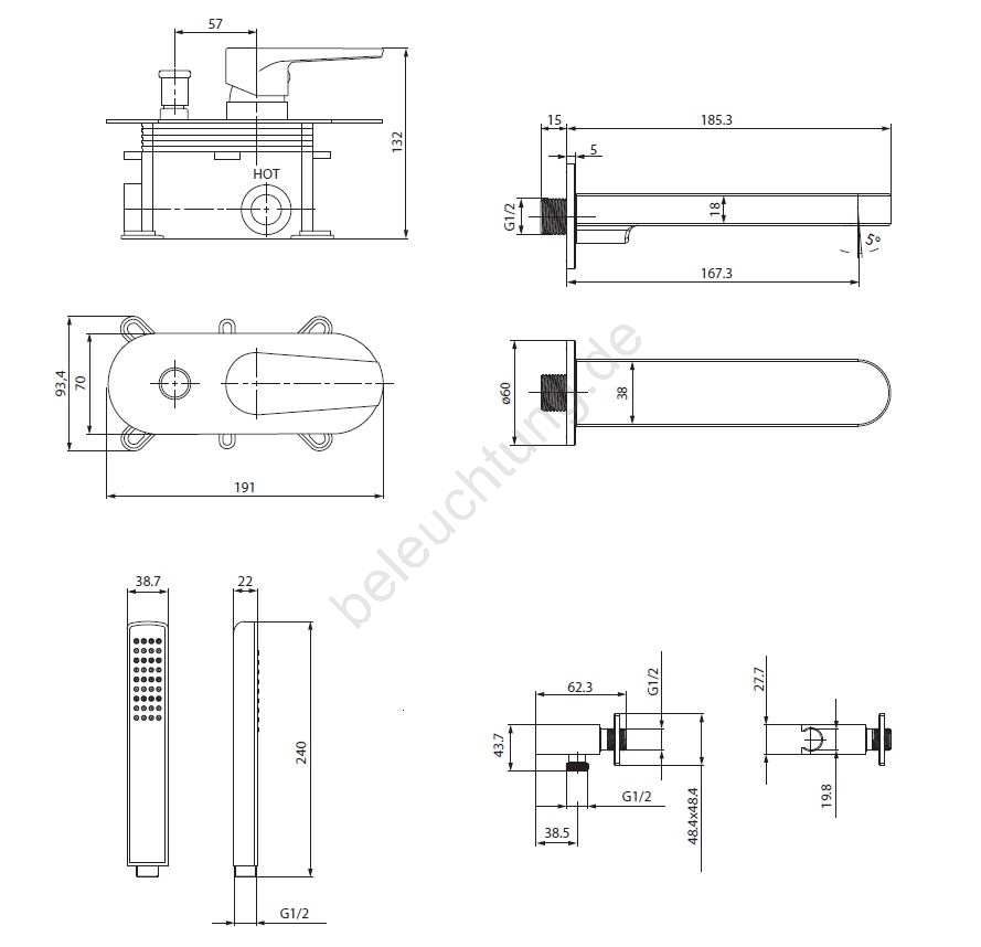 • Garantie: 12 Jahre auf den Körper, 5 Jahre auf den Kartuschenkopf und 2 Jahre auf die übrigen Setbestandteile.