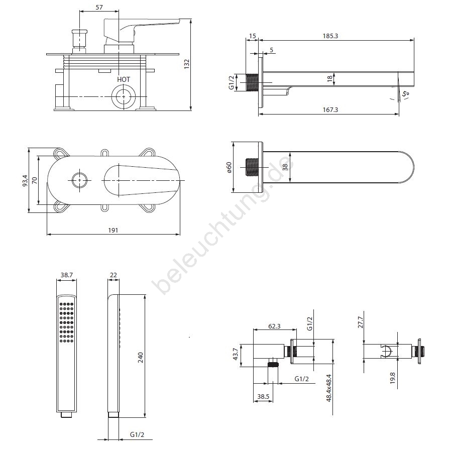• einen Duschschlauch aus PVC mit einer Länge von 150 cm (WRAS-Zertifikat),