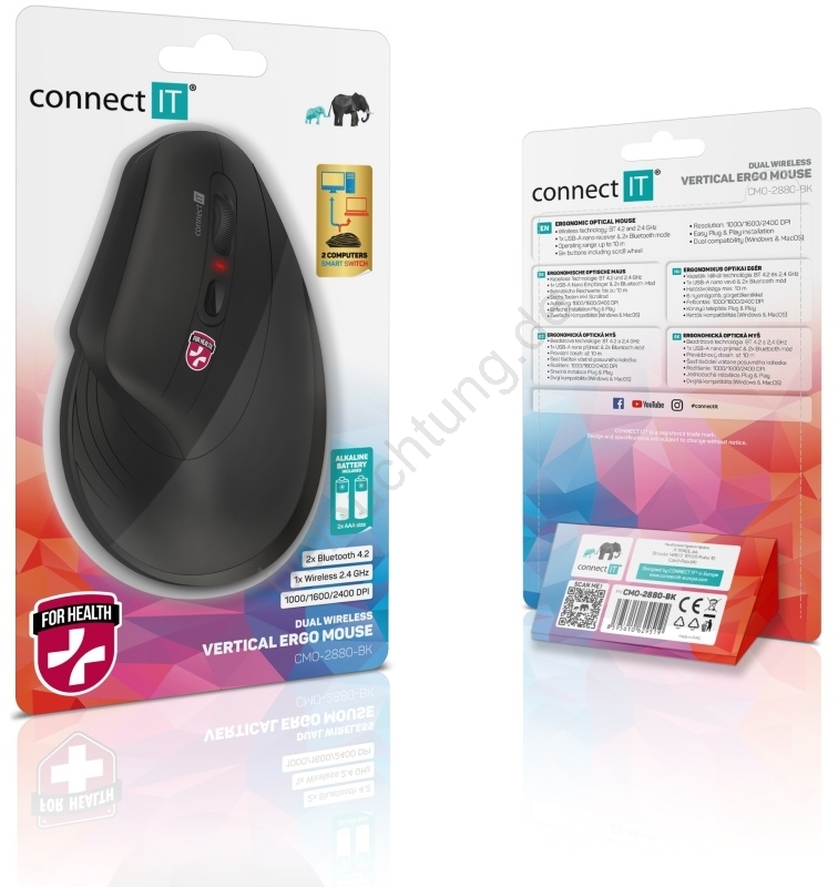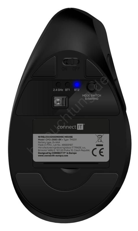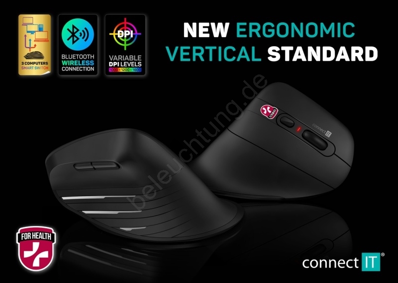 CONNECT IT CMO-2880-BK - Ergonomische kabellose Verti TriMode-Maus 1000/1600/2400 DPI 2xAAA schwarz
