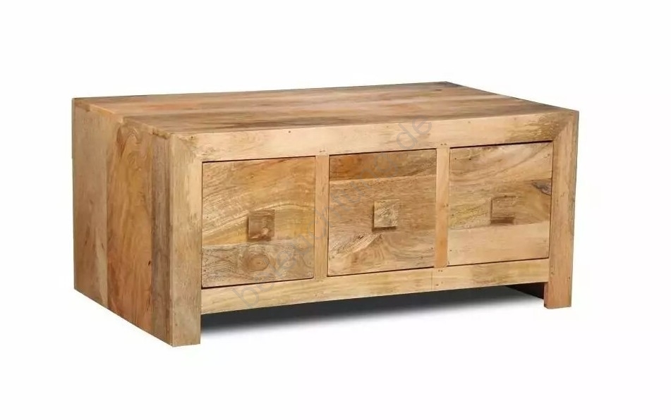 • Massivholz-Couchtisch aus indischem Mangoholz.