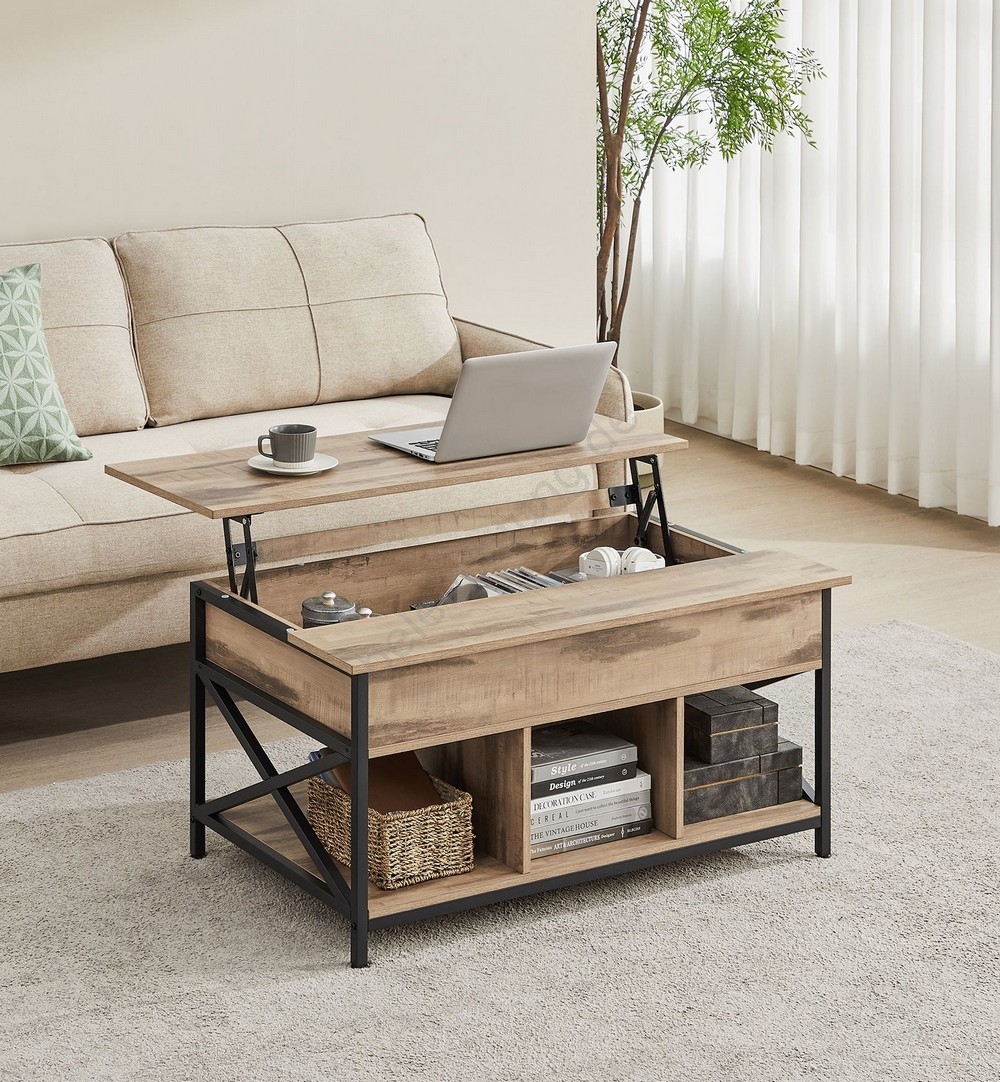 • Heben Sie die Tischplatte an und ziehen Sie sie näher, um von der Couch aus zu arbeiten, Mahlzeiten zu genießen oder sich bequem handwerklichen Tätigkeiten zu widmen.