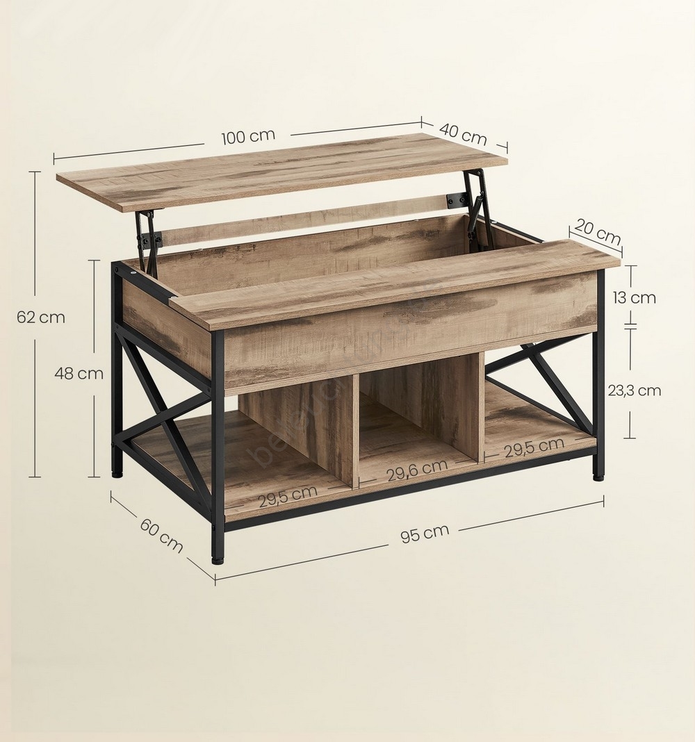 • Couchtisch NYRO mit Hebefunktion, braun/schwarz