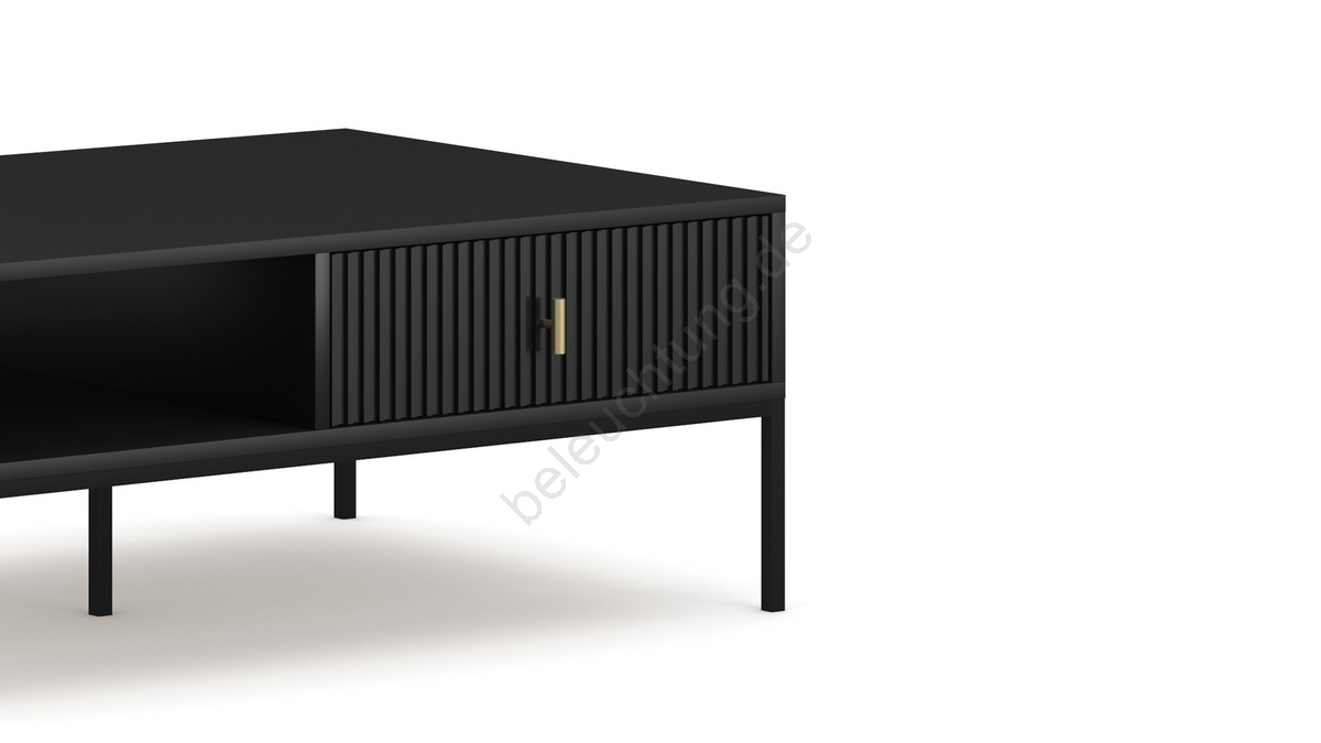 • Er verfügt über ein offenes Fach und zwei Schubladen mit vertikaler Rillenstruktur für einen raffinierten visuellen Effekt.