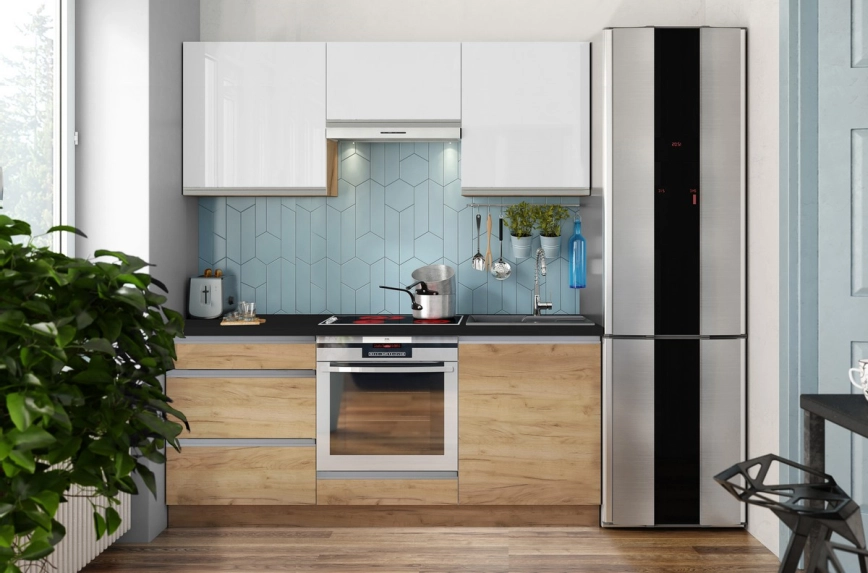 Küchenzeile MARINA 180 cm Craft-Eiche/Weiß Hochglanz