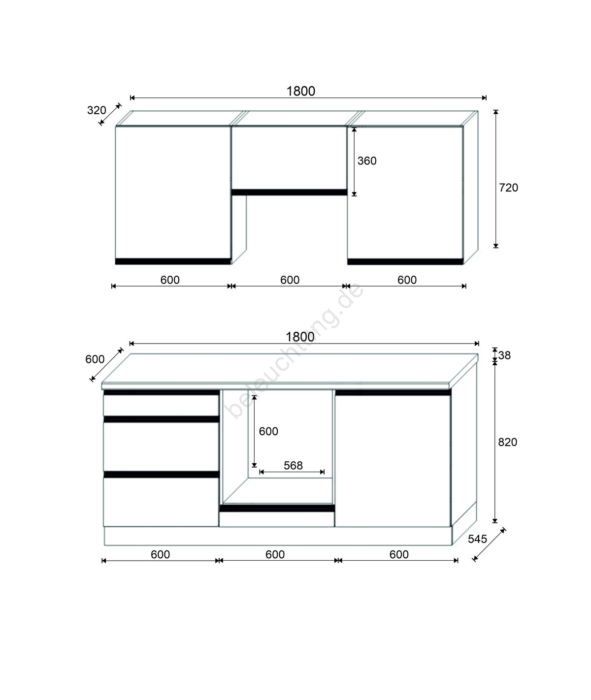 • Elektrische Geräte, Küchenspüle und Armatur sind nicht im Lieferumfang enthalten.