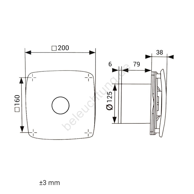 • Der Lüfter ist kompatibel mit Rohrleitungen mit Ø 125 mm.