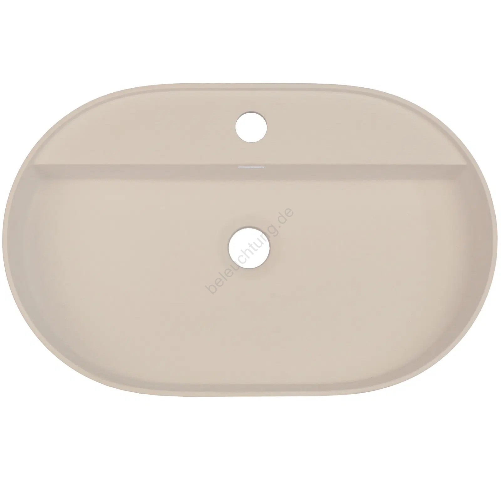 • Das Waschbecken ist zur Montage auf der Arbeitsplatte vorgesehen, was eine flexible Platzierung und Kombination mit verschiedenen Arten von Badarbeitsplatten ermöglicht.
