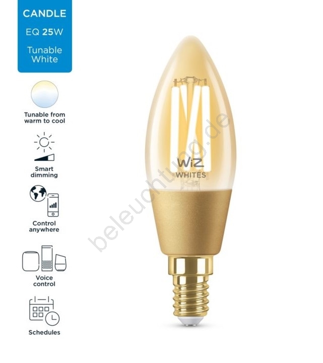 • Dimmbare LED Glühbirne FILAMENT C35 E14/4,9W/230V 2700-6500K CRI 90 Wi-Fi - WiZ