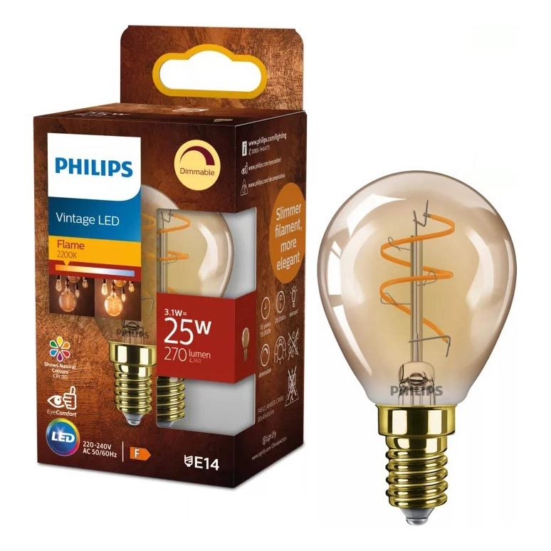 Dimmbare LED-Glühbirne VINTAGE Philips P45 E14/3,1W/230V 2200K
