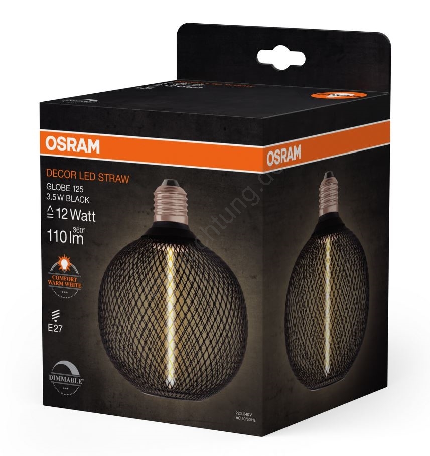 Dimmbare LED-Glühlampe DECOR FILAMENT G125 E27/3,5W/230V 1800K schwarz - Osram