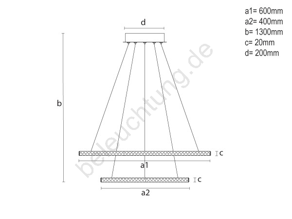 • LED dimmbare Pendelleuchte an Kabel, 100 W, 230 V, 3000–6500 K, Ø 60 cm, inkl. Fernbedienung