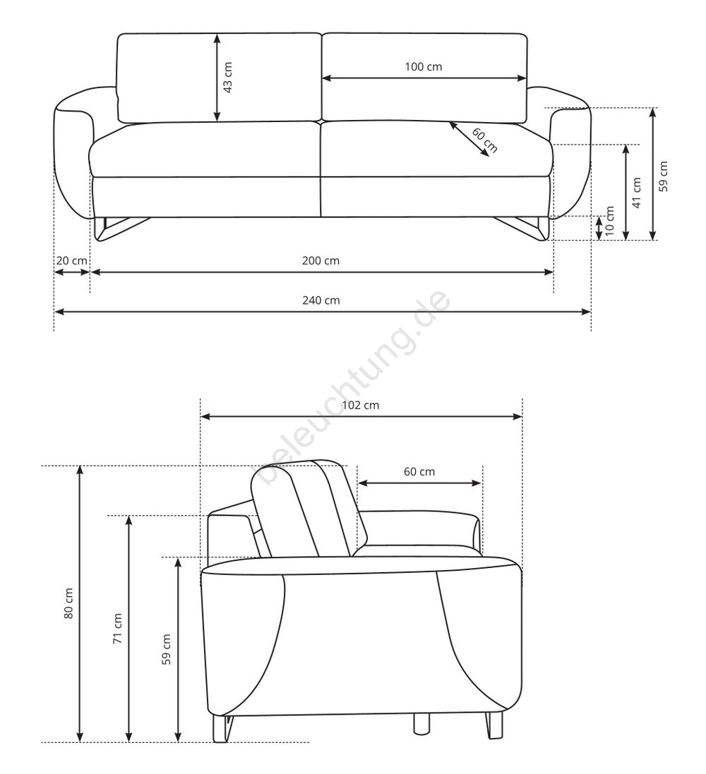 • Sitztiefe 60 cm bietet ausreichend Platz für entspanntes und ergonomisches Sitzen.