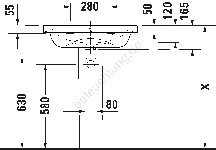 • Lieferumfang: Waschbecken ohne Siphon und Armatur.