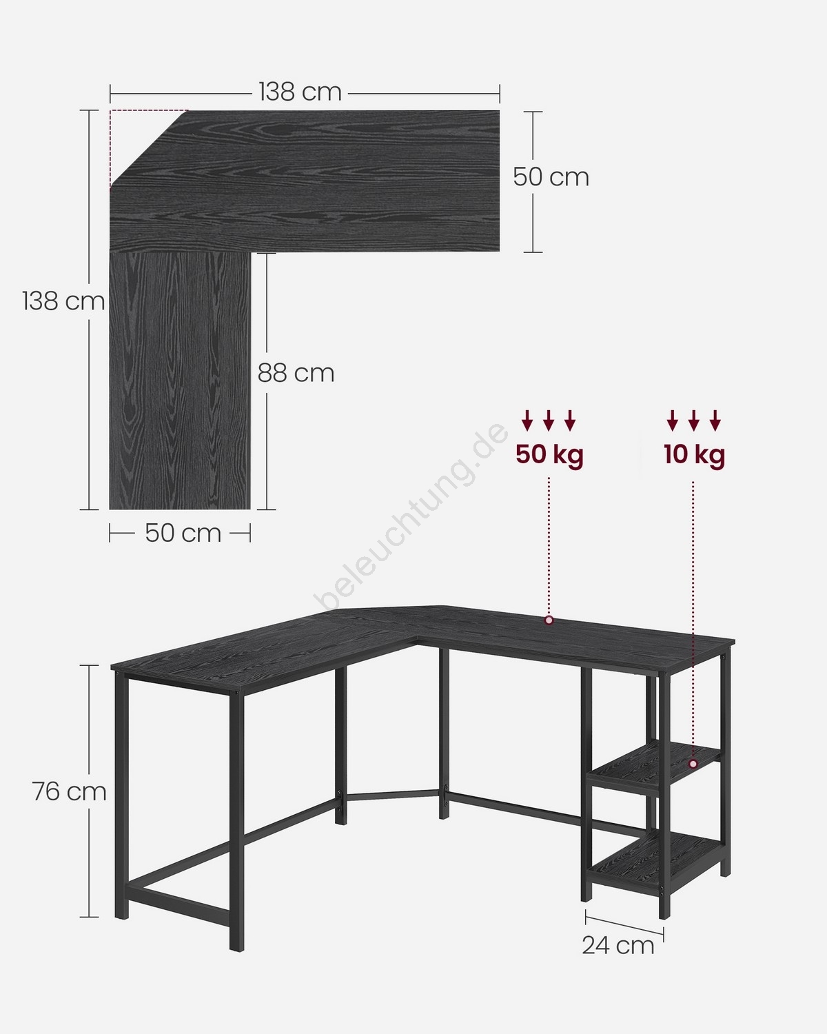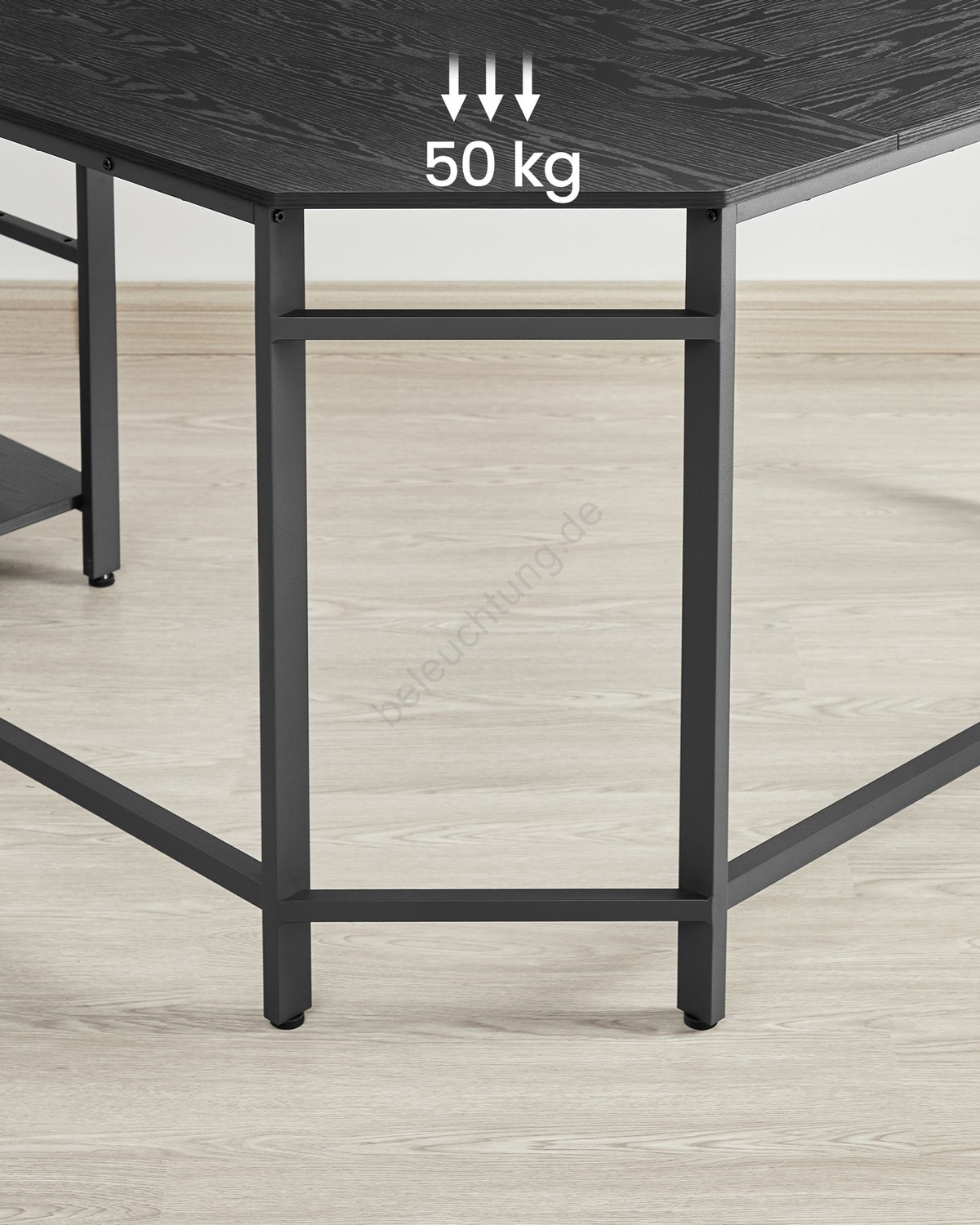 • Die praktische L‑Form dieses Schreibtisches ermöglicht eine optimale Nutzung des Platzes in Ihrem Büro oder Homeoffice.