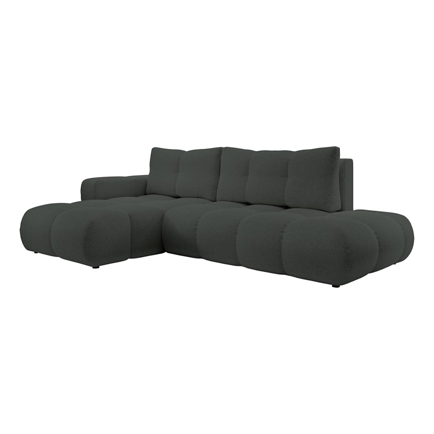 Ausklappbares, gepolstertes Ecksofa ALMADA in L‑Form, links, anthrazit – mit praktischem Stauraum