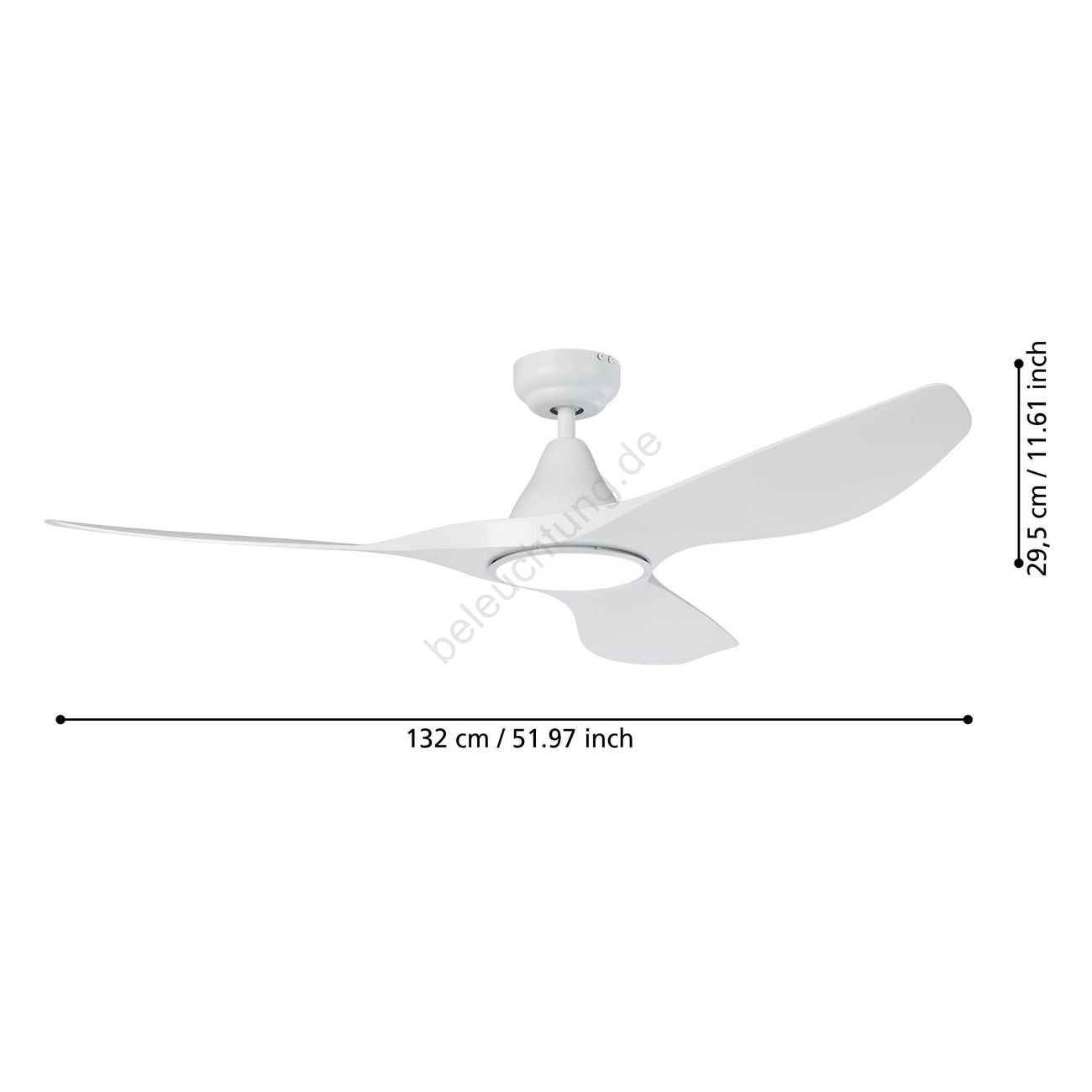 Eglo - LED-Deckenventilator LED/19W/230V Ø 132 cm weiß + Fernbedienung ist eine moderne Beleuchtungslösung für Ihr Zuhause. Die Leuchte nutzt die Vorzüge von Intergriertes LED Modul, die für eine effektive und energiesparende Beleuchtung sorgt. Das Design und die hohe Qualität der Leuchte sorgen für eine lange Lebensdauer und Zufriedenheit mit Ihrer Beleuchtung.