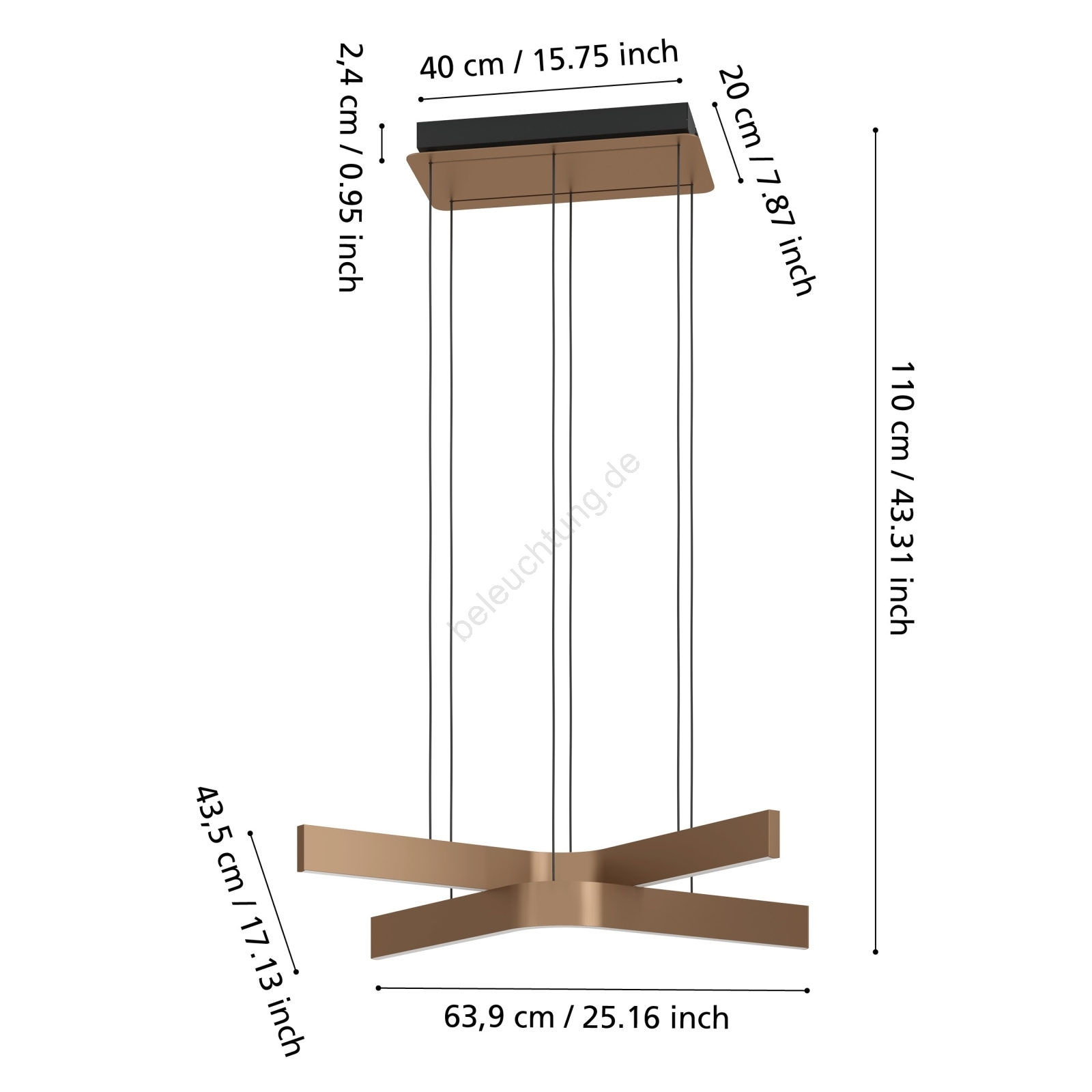 Eglo - LED RGBW dimmbare Pendelleuchte an Kabel 2xLED/18W/230V kupfer/schwarz