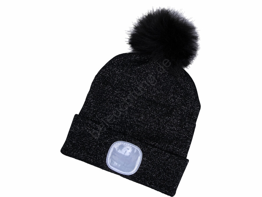 Extol - Mütze mit Stirnlampe und USB-Ladefunktion 300 mAh, schwarz mit Bommel, Gr. UNI