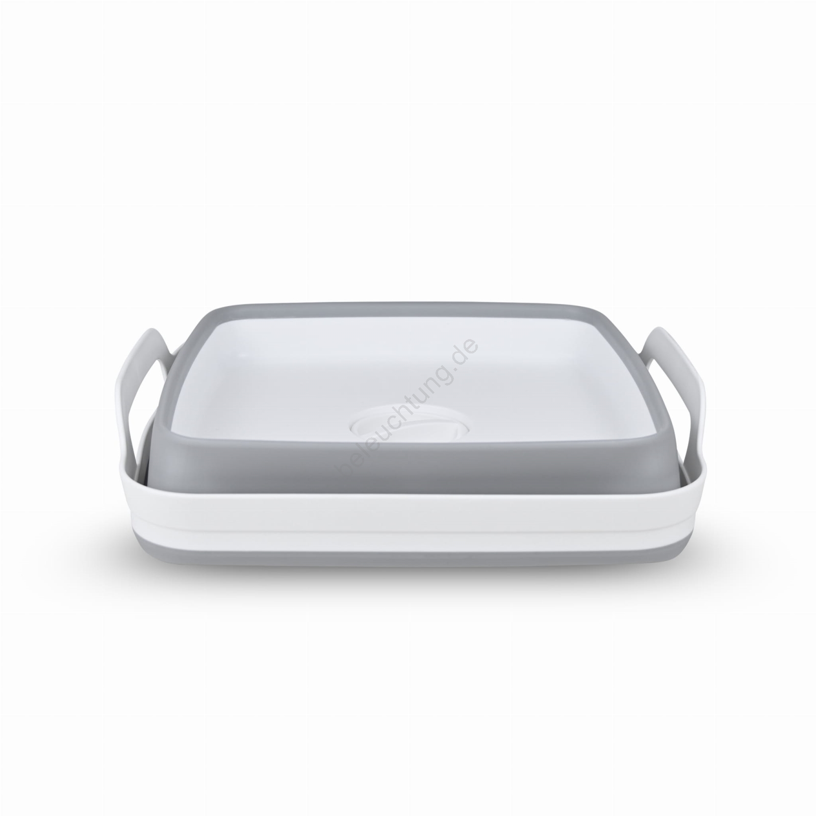 • Dank seiner Vielseitigkeit dient es als Spülbecken, Sieb, Transportwanne oder Aufbewahrungsbox — ideal für kleine Wohnungen, beim Camping, für Balkone oder die Werkstatt.