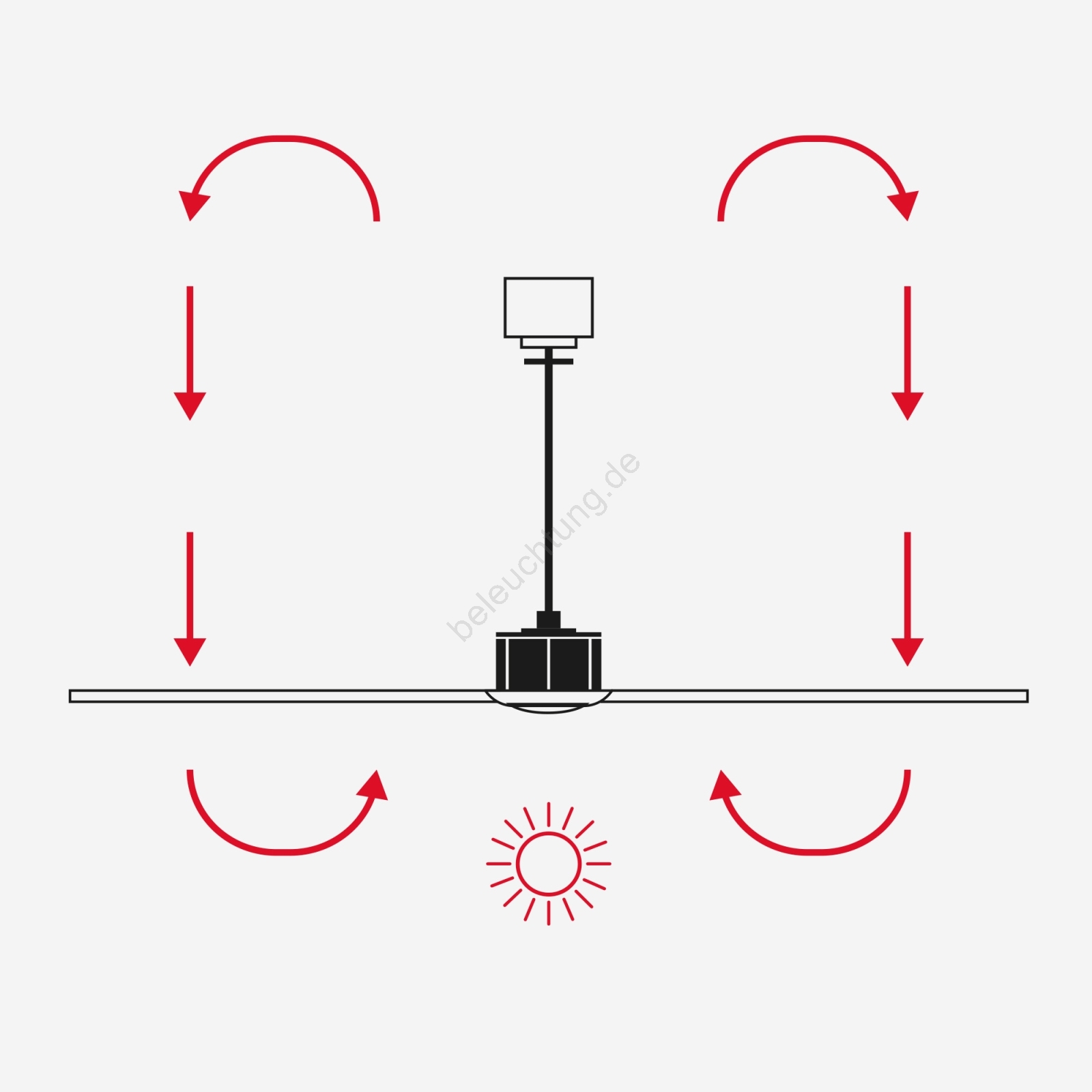 • Dieser Ventilator besitzt eine Sommer-Winter-Rücklauf-Funktion, sodass er auch im Winter genutzt werden kann (Einsparung der Heizkosten im Winter bis zu 20 %).
