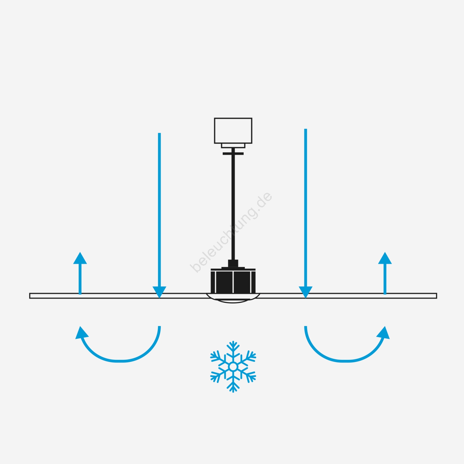 • Der Ventilator besitzt eine Sommer-/Winter-Richtungsumkehrfunktion, sodass er auch im Winter verwendet werden kann (Heizkosteneinsparungen im Winter bis zu 20 %).