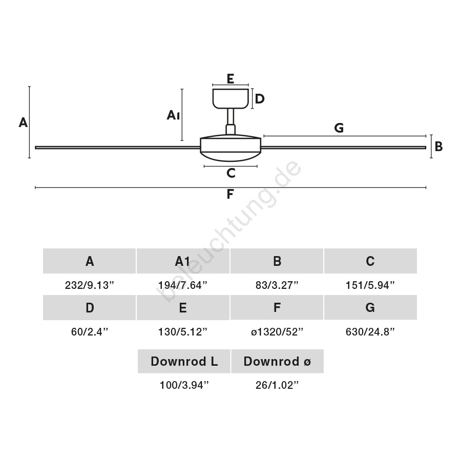 • Deckenventilator ohne Beleuchtung.
