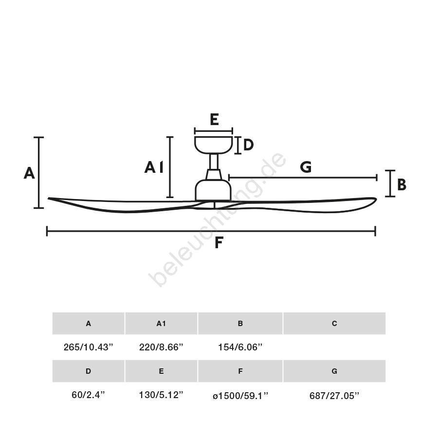 • Die Ventilatorflügel aus ABS-Kunststoff sind UV-geschützt, was Schäden und Verfärbungen verhindert.